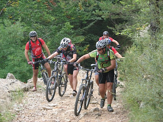 Tots en teníem moltes ganes de començar, però a pocs minuts d'iniciar el recorregut, ja veiem una mica com seria la "sortideta" ja que els camins no es trobaven en força bon estat i juntament amb inclinacions fortes, obligaven a baixar de la bici massa sovint...