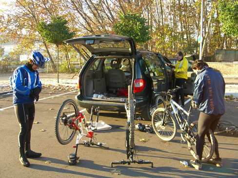 Al arribar el fred feia la seva aparició i no hi havia més remei que abrigar-nos fins les orelles mentre muntàvem les bicicletes i preparàvem tot l'equip per iniciar la sortida.
