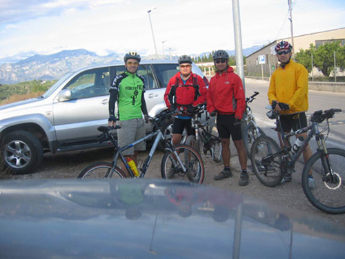 Aquesta vegada varem sortir, en Pere, en Carles, l'Albert i Jo mateix. L'Albert (germà d'en Carles), company de rutes pirenaiques, no és encara un afibiker, aviat el fitxarem.